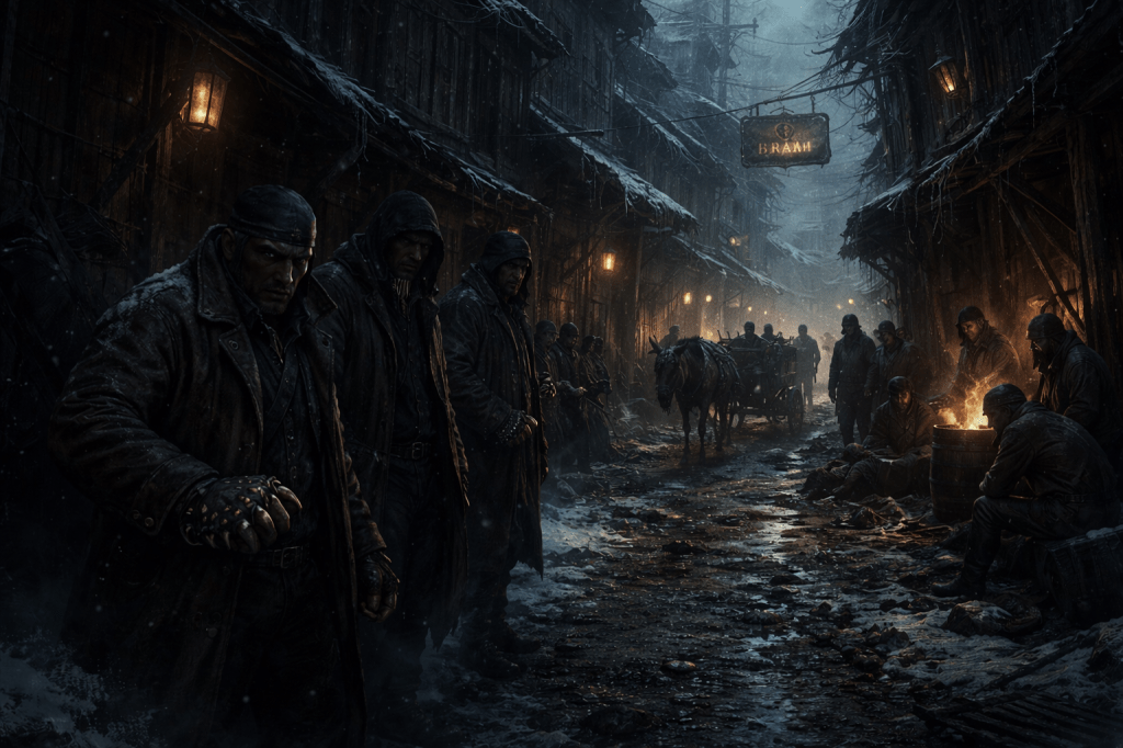 Deciding that stealth was their only real option, the party resolved to enter the Narrows under cover of night. They muddied their clothes, pulled up hoods, and smeared soot across their faces to blend into the wretched environment. Pushka wrapped her head in bandages and covered herself in charcoal black, looking every bit the part of a shady dwarf with something to hide. Baeliya, despite her best efforts, still carried the unmistakable bearing of a high elf beneath her grime, though she hoped the darkness and the chaos of the slums would work in her favor. Eddie hung back further in the shadows, positioning himself to provide cover if things went sideways, while Mel kept her hand close to her dagger and her eyes moving across the crowd.